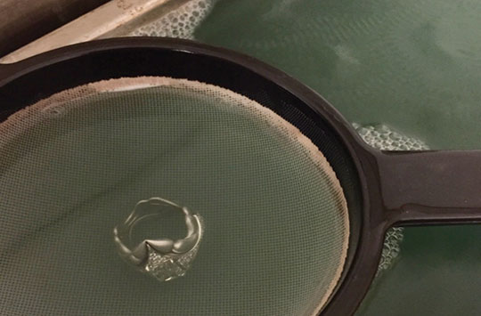 Unfortunately polishing jewelry is a messy affair, so a thorough cleaning is required after our final finish has been applied. This is be done by placing our Jewel in an ultrasonic cleaner. The cleaner will then use high frequency sound waves to remove all residue left over from the finishing process.