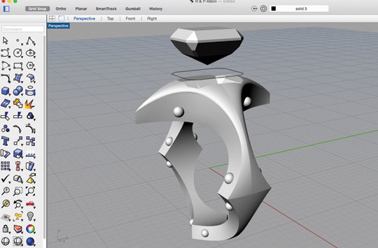 With our basic model now completed we can finalize the design by deciding the best way to layout our accent stones, once the most appealing pattern has been discovered we will then carefully drill that pattern out into our model.